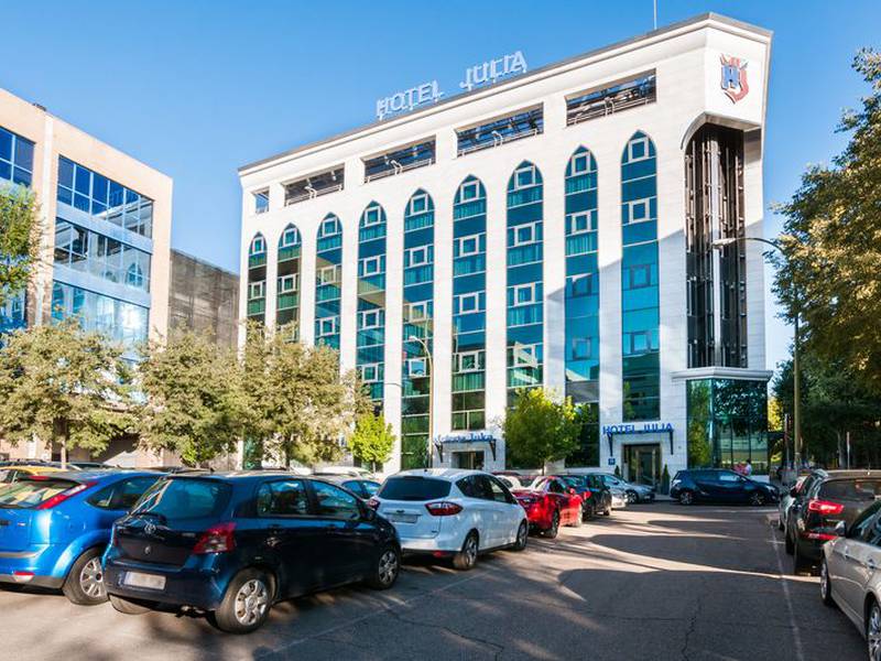 Take a break in total comfort in one of the main commercial districts of Madrid with the Hotel Julia. Located in close proximity to the famous Calle de Alcalá shops, the Adolfo Suárez airport and a great number of multinational companies, this hotel in Madrid emerges as one of the best places with value for money to stay in the city. You can find an array of great services at our accommodation which invites you to relax whether you are visiting on holiday or for a business trip. These include very welcoming rooms, a cafeteria with special daily menus, free breakfast at the weekend and bank holidays, parking and event rooms. Book your hotel near to the Alcalá area at the best price online guaranteed at the Hotel Julia official website.